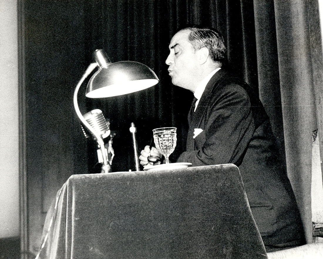 Su figura era inconfundible: de estatura media, gruesos anteojos de negra armazón, vestido siempre de traje oscuro, comenzaba sus frases con el latiguillo “Vea usted…”, y exhibía orgulloso el chevalier que alhajaba el índice de su diestra.