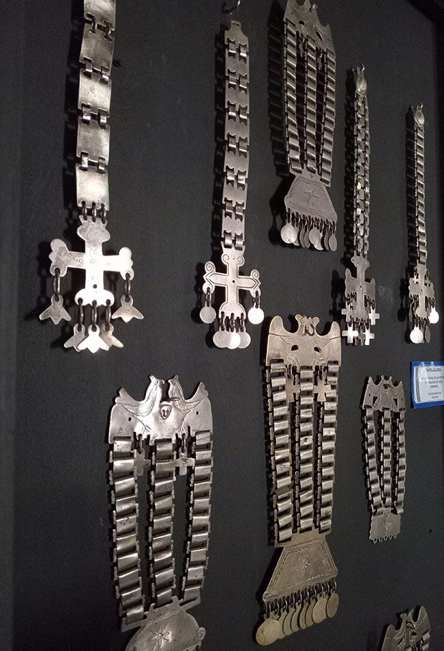 Piezas de platería pampa exhibidas en una vitrina del Museo. Fotografía: Tato Soriano.