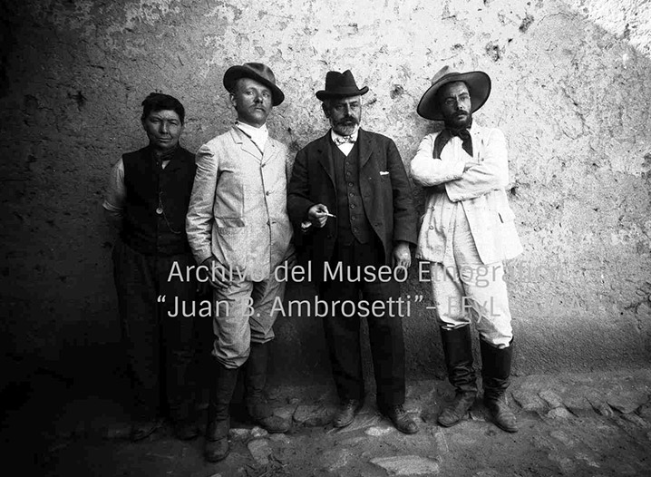 Todo ese material se completaba con una importante biblioteca especializada, enriquecida con vocabularios de lenguas indígenas y cronistas coloniales, cuyos volúmenes llevaban el ex libris de Ambrosetti, que representa la portada con marco de una antigua capilla criolla de Catamarca.