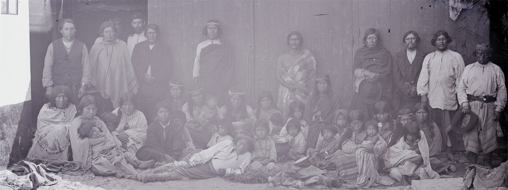 Vignati reprodujo [lámina I] este retrato colectivo en su «Iconografía aborigen I Los caciques Sayeweke, Inakayal y Foyel y sus allegados» [Revista del Museo de La Plata, Nueva Serie, Tomo II, Antropología, N° 10]. La toma fue realizada por Samuel Boote en el Tigre por indicación de Francisco P. Moreno. Circa 1885-1886. Fotografía: Archivo Histórico del Museo de La Plata, negativo ARQ-002-006-0002.