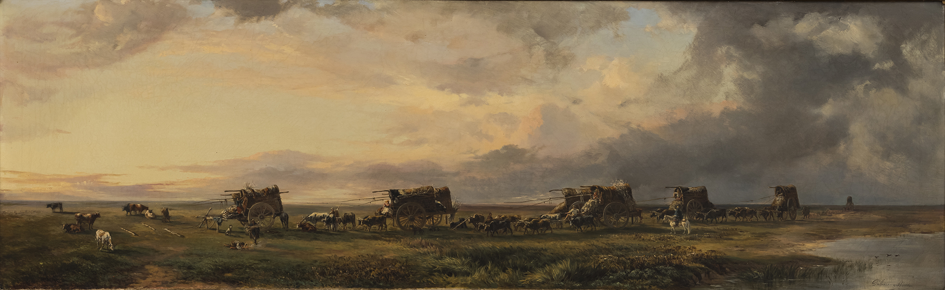 Lo maravilloso de esta exposición, allí en las amplias salas del Museo Fortabat las podemos disfrutar, majestuosas o intimistas, con todo su genuino encanto. Dos de ellas adquiridas en los últimos años en subastas internacionales y retornadas al país por la decisión de un coleccionista particular, nos referimos a Tropa de carretas en la Pampa -firmada por Pallière y Henry Sheridan (1834 - 1860)- y El payador, que dialoga con Idilio Criollo, un notable óleo que había pertenecido a la familia de Antonio Cambaceres y hoy, al Museo Nacional de Bellas Artes, y con Le gaucho cantor, barde de la république argentine, de León-Ambroise Gauthier (1822 - 1901), un pintor francés que inspirado por el Facundo de Sarmiento, llevó al lienzo una obra monumental ocupada en el mismo asunto que cautivó a Pallière.