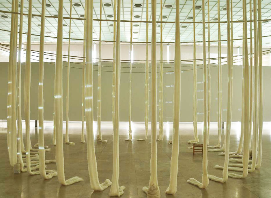Pero es en la Documenta 14 cuando expone sus quipus, que son la síntesis profunda de la memoria latente de los pueblos originarios y el latido de la Naturaleza. Esta sabiduría anudada en las lanas son la energía simbólica de miles de años de cultura andina. Propicia, con estas obras, el cambio y la creación de una nueva conciencia, a partir de un pueblo particular. Por eso, declama sus poesías con el sonido del agua, del viento, del aire, de hombres milenarios. La conciencia implica derrumbar, pero también construir algo nuevo.