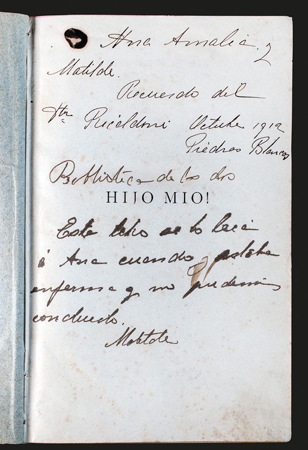 Unos años antes, durante la estancia de la familia en Europa y África entre 1907 y 1911, ya se evidenciaba el deseo de crear una biblioteca conjunta, reuniendo los libros de ambas y adquiriendo nuevas colecciones. En ese momento comenzaron a añadir anotaciones manuscritas en los ejemplares (incluso en los ya fechados anteriormente) como señal de propiedad, que incluían la designación "Biblioteca de las dos" o expresiones similares, junto a la fecha y lugar de compra y los nombres de ambas. Estos apuntes especificaban si había sido un obsequio, el nombre de quien se los había regalado, cuándo y dónde. Muchos de los libros presentan varias capas de escritura, donde se encuentran la caligrafía de ambas mujeres y nuevas fechas de lectura. Asimismo, es probable que Matilde se haya dedicado a reorganizar la colección luego del fallecimiento de su hija, y durante esa tarea se haya ocupado de realizar nuevos registros y complementar los anteriores, señalando la ubicación de la biblioteca en Piedras Blancas y otros datos que consideró importantes.
