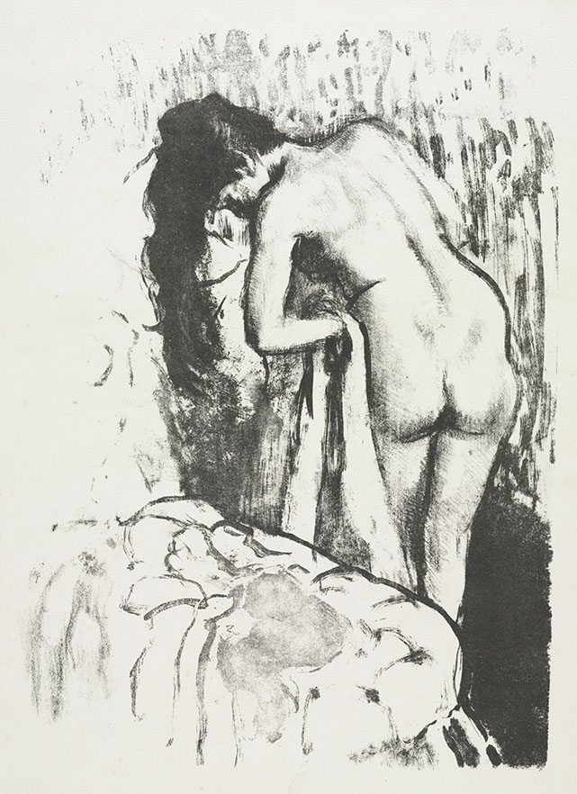 Mujer desnuda y parada, secándose, litografía de Edgar Degas de 1891.
