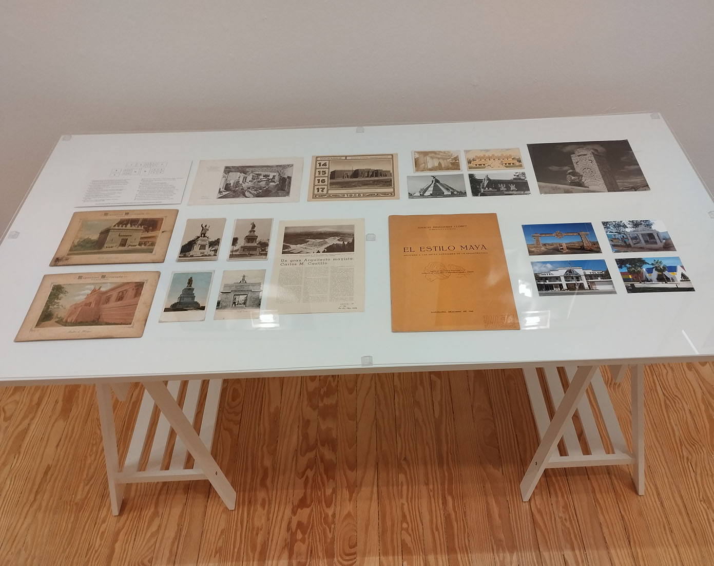 Esta exposición arranca con el trabajo de José Manuel Ballester registrando algunos de esos pabellones sevillanos, una tarea que se inició en el marco de la exposición «Antes de América», en la cual Ballester participó elaborando la primera pieza americana de su conocida serie «Espacios ocultos», bajo el título Lugar para un descubrimiento (2023) qué consistió en una impresión digital sobre el lienzo, a tamaño real, de la conocida pintura de historia mexicana El descubrimiento del pulque (1869) de José María Obregón, pero con todos sus personajes digitalmente eliminados. Tras el trabajo de registro en Sevilla, y aprovechando sendos viajes a La Habana (Cuba) y a Yucatán (México), Ballester continuó fotografiando edificios neoprecolombinos localizados allí, obras que también incluimos en esta muestra.