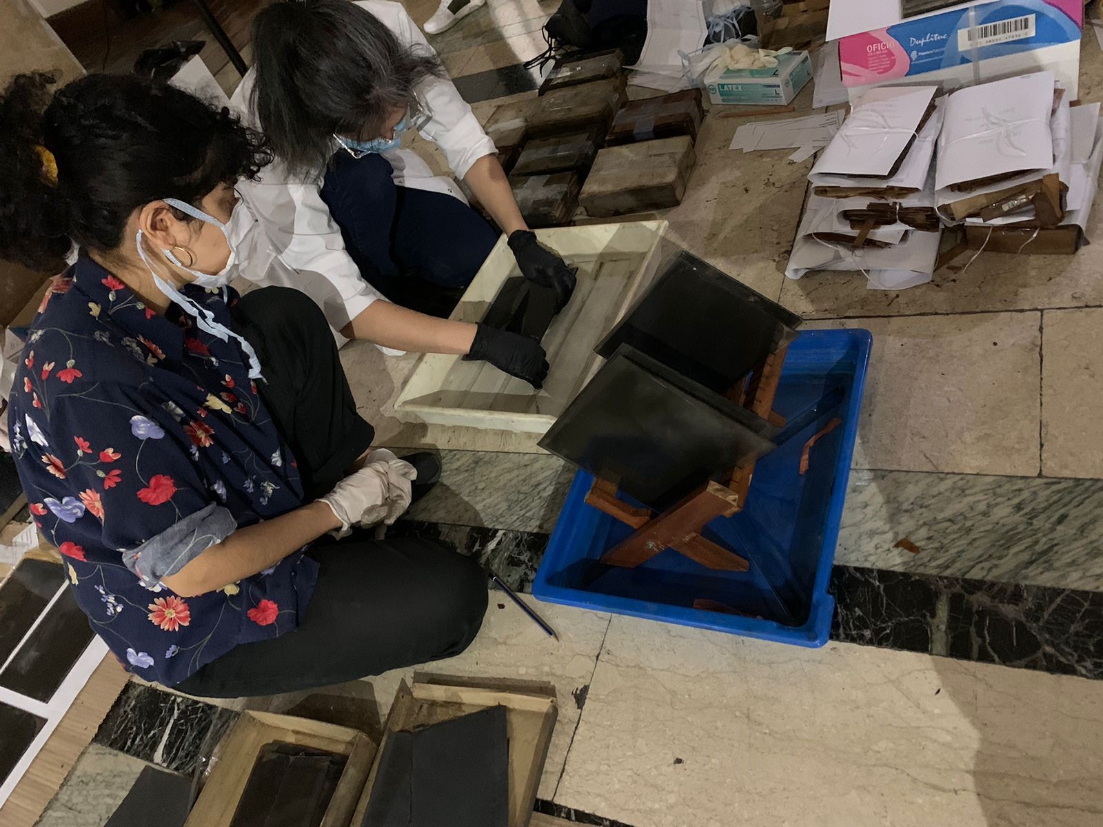 «Para el acondicionamiento de los documentos fotográficos en soporte vidrio, realizado con anterioridad a cada envío - nos explica la coordinadora del Departamento -, contamos con el apoyo de ASINPPAC (Asociación Internacional para la Protección del Patrimonio Cultural) junto a quienes nos presentamos al programa Iberarchivos [3] en 2019 que nos otorgó un subsidio para realizar tareas de conservación sobre el fondo Galerías Witcomb. Si bien la pandemia demoró su ejecución, con esos recursos económicos logramos intervenir 4500 placas de vidrio del fondo Witcomb, las de formato más grande [superior a 18 x 24 cm], algunas de hasta 40 x 50 cm. Primero, dentro del edificio de Alem se trasladaron desde el subsuelo al segundo piso, donde se limpiaron, hicimos cambios de guarda, se inventariaron y digitalizaron. Toda esta tarea a lo largo de un año y medio».