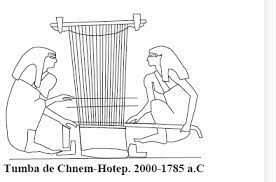 Si bien la primera referencia a un telar proviene de Anatolia, de Catal Huyuk -quizás la ciudad más antigua del mundo, durante el período Neolítico, unos 6000 años a.C-, no existe evidencia fehaciente de que fuera un telar de suelo o vertical. En cambio, sí podemos demostrar el uso del telar de estacas en Egipto, documentado por el hallazgo de su representación en una vasija de cerámica hallada en Badari -cuya datación se estima en 5000 años a.C.- y en un mural de la tumba de Kumhotep en Beni Hasan, de la dinastía XII, alrededor del 2000 a. C.