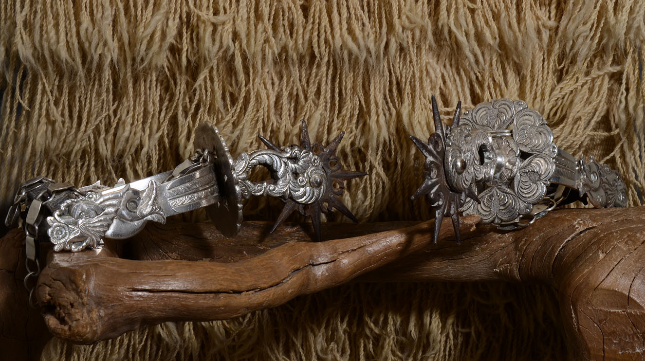 Par de espuelas de plata. Punzón: Machado. Su autor tenía el taller en Buenos Aires en 1851, lo localizamos en la “Guía de la Ciudad de Buenos Aires y manual de forasteros” de ese año.