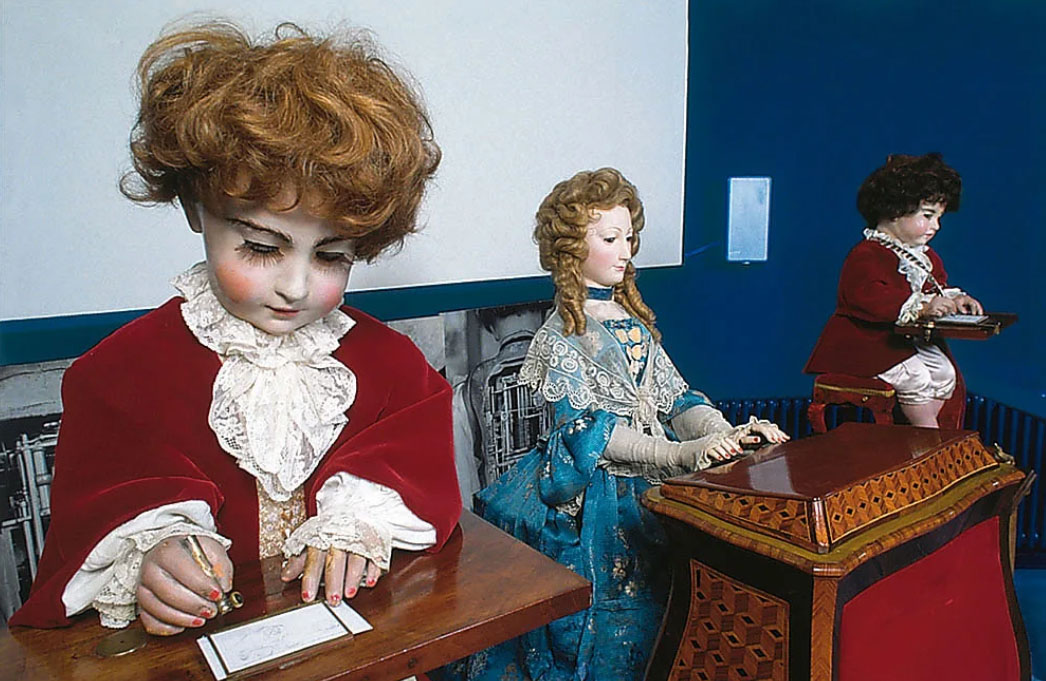 Since the beginning of the 20th century, the Museum of Art and History of Neuchâtel, Switzerland, has housed three of the traveling automatons that toured Europe for 150 years with the greatest success: The Clerk, The Organist and The Draftsman, built between 1768 and 1774 in La Chaux-de-Fonds, the center of the nineteenth-century watch industry and birthplace of Le Corbusier. This is the joint work of Pierre Jaquet-Droz (1721–1790), his son Henry-Louis (1752-1791) and Jean-Frédéric Leschot (1746-1824) delivered to the city on May 1, 1909 with the condition that they be kept in operation and on display. Thanks to her, on the first Sunday of the month, a watchmaking expert presents them to the public who come to the museum to admire these android automatons, the stars of the mechanical shows of the 18th century.