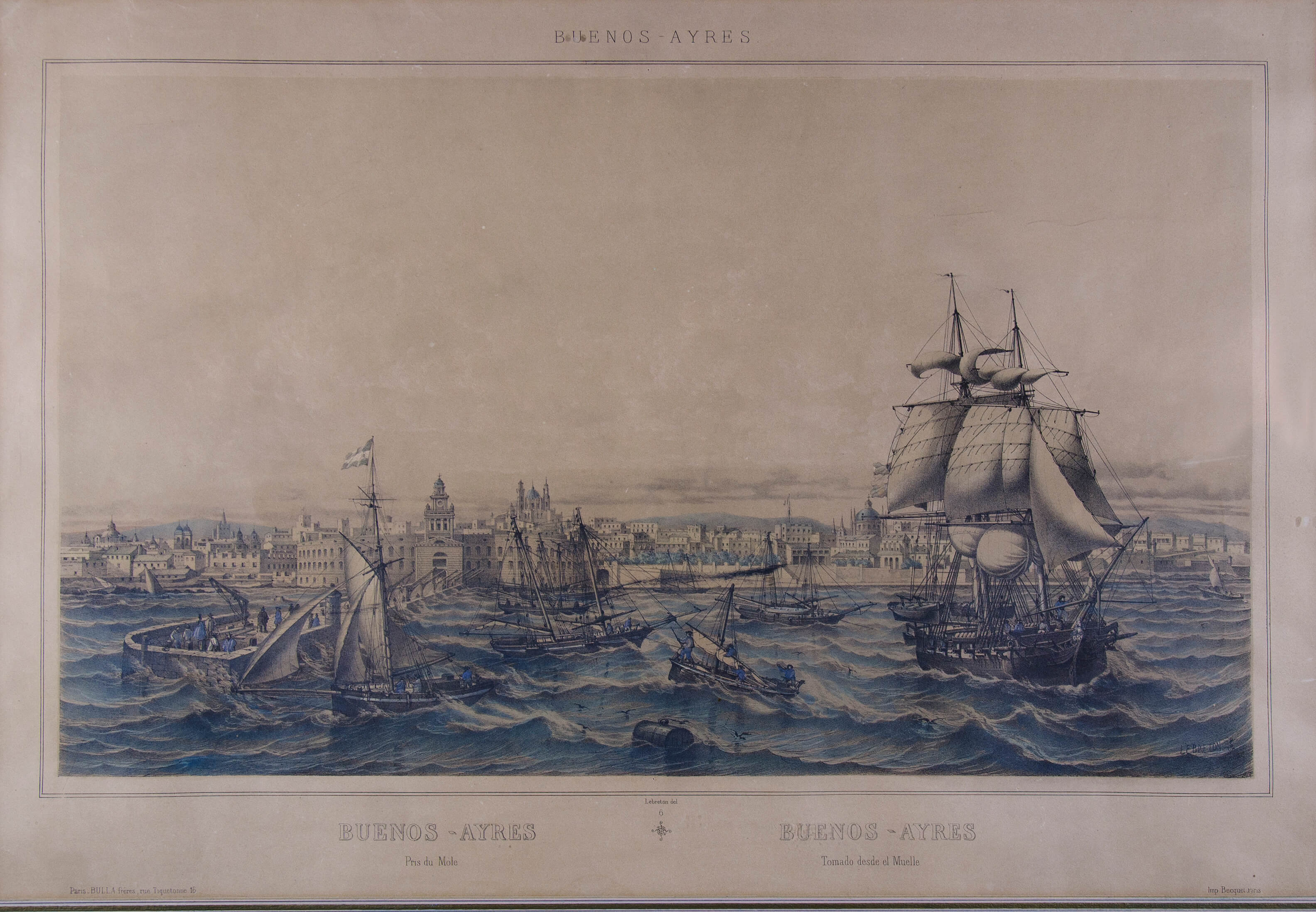 Las vistas de Buenos Aires conforman un nutrido corpus iconográfico que ha despertado el interés de los historiadores y coleccionistas; en particular aquellas representadas desde el río porque permiten reconocer las edificaciones que señalan el crecimiento de la misma a lo largo del tiempo; además de sumar el encanto pintoresco del oleaje y el movimiento de las distintas embarcaciones. Estos barcos, a la par que generan la profundidad del espacio pictórico, muestran la actividad comercial o la situación militar de la región en un momento determinado. Sin duda, es sobresaliente la existencia de una acuarela, utilizada como modelo de las litografías de la vista de Buenos Aires desde el muelle de Louis Le Breton.