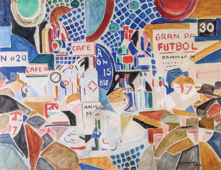 En un café situado en la plaza de la Universidad, Barradas solía sentarse a diario en la misma mesa, y allí distribuía gran cantidad de bocetos y dibujos. A través de los cristales solía observar detenidamente todo el dinamismo callejero volcando su mirada en los mil aspectos de la realidad, descomponiendo y componiendo, captando así su pequeño universo circundante. A través de esta observación permanente, surge un nuevo movimiento, al que bautiza con el nombre de “Vibracionismo”, que determina el paso de una sensación a otra complementaria, transformando cada uno de estos pasos en distintas armonías de formas y colores que aparecen iniciados, esbozados, pero que se completarán en la mente del espectador. Así logra Barradas materializar la dinámica, el movimiento y la vida misma, algo que no se podría percibir a través de un retrato clásico o de un paisaje terminado que resultan mucho más estáticos.