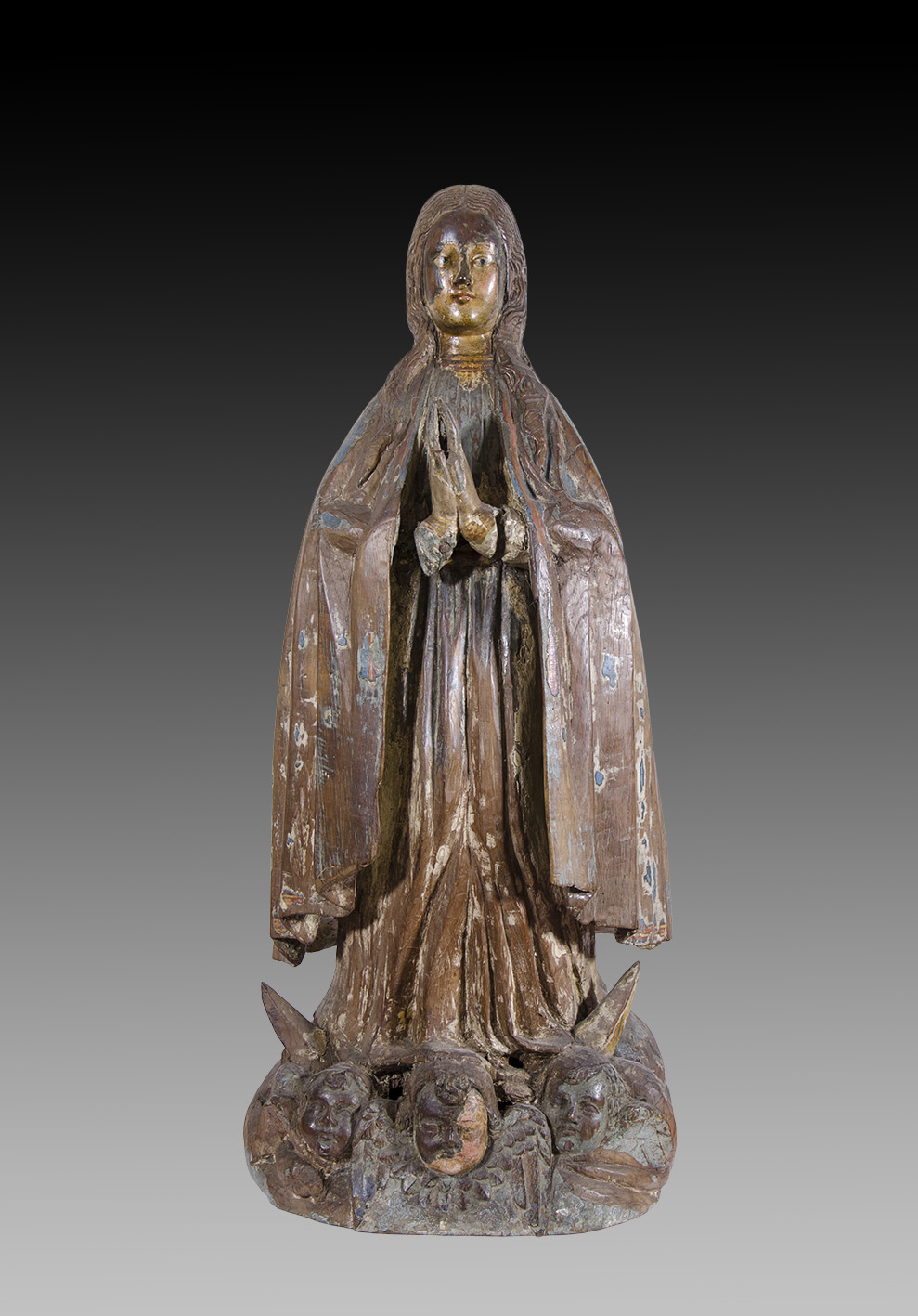 Inmaculada Concepción. Talla jesuítica con restos de policromía, 80 cm. Colección Héctor Schenone. Fotografía: Nicolás Vega.