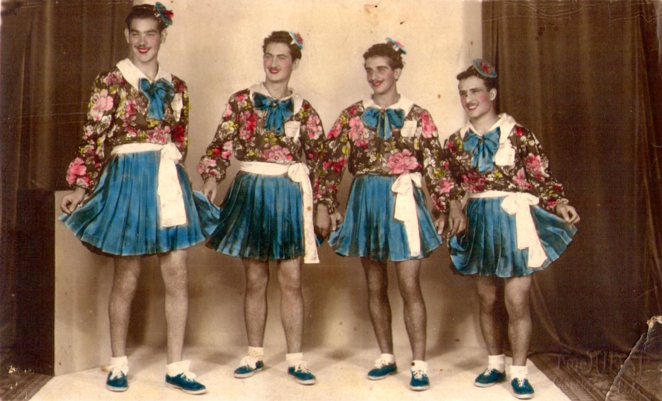 Viejas fotos. Sólo eso queda de aquella magnífica pasión por el disfraz. De pierrot, sobretodo hasta los años ´20 en que las colectividades tomaron peso propio. De allí en más predominantes los baturros, toreros, y gaiteros asturianos, las majas, gitanas, y los vascos pelotaris con sus paletas en miniatura, y su versión lechera con los tarros también en escala. Napolitanas, Damas Venecianas, y Polichinelas que certificaban el amor a Italia. Ya en los ´30, con el apogeo del cine, cowboys y chaplines, Aviadores de blancos overoles y antiparras que aparecen un día con el auge aéreo. Holandesas, chinas, y rusas de sombrero de piel. Gauchitos coloreados implacablemente de celeste y blanco. Ya en los ´40 las rumberas y cariocas, y las odaliscas, y las aldeanas, y caperucitas que se vuelven moda de un año para el otro. La fantasía en los disfraces más extravagantes: de trompo, de cigarrillo, de lámpara eléctrica, y hasta de Edificio Kavanagh con sus ventanas y todo.
