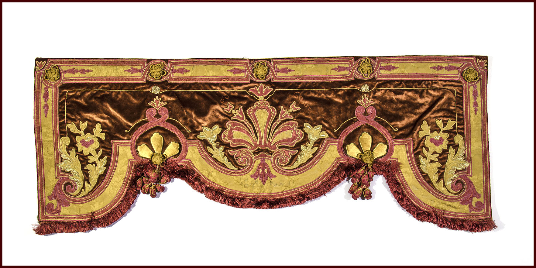 3. Brocato: Las muestras del género original presentaban tonos diferentes. Las presentadas por la empresa resultaron satisfactorias desde el punto de vista del dibujo con telar -esta vez de 1,38 de ancho- y de la textura, títulos de los hilados y brillos. Sería necesario cotejarlo con el damasco y el terciopelo de los bandeaux, para la aprobación definitiva.