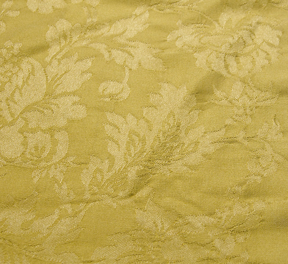 4. Sarga: Con urdimbre de seda 20% y trama de Trevira 80%, se logró una textura y brillo muy similar a la del original 100% seda. Se utilizaría el mismo color en la urdimbre que para el damasco de los cortinados de los palcos, reforzando la unidad del conjunto.