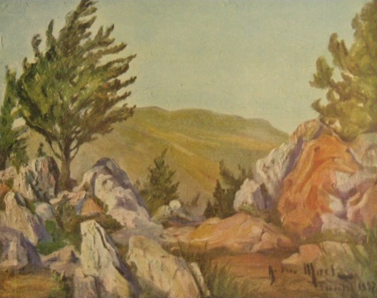 En 1923, Moch viajó a Estados Unidos, experiencia que registraría en su libro Bocetos de mi viaje a Norte América. En Nueva York, la artista expuso en la Anderson Gallery. Si bien las obras que allí exhibió no han podido identificarse, conocemos una vez más su temática: retratos y paisajes de Argentina y Chile, incluidos de Tierra del Fuego. Paisajes que pintó luego de recorrer el sur y la región andina de Argentina y Chile. Allí, la incansable caminó y cabalgó hasta hallar las vistas que captaran, en sus palabras, el ir “de maravilla a maravilla” en los “Andes inmensos y cambiantes”.