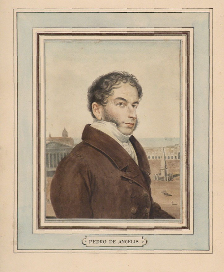 Retrato de Pedro de Ángelis, litografía de Langlumé, activo en París, obra de Orest A. Kiprensky. Colección particular. Argentina. De Ángelis lo incluyó en algunos ejemplares de su “Colección de Obras impresas ...”, para Josefa Emilia Sabor, su biógrafa, la obra más importante de cuantas editó en el Río de la Plata. [En Pedro de Angelis y los orígenes de la bibliografía argentina. Buenos Aires. Ed. Solar. 1995]