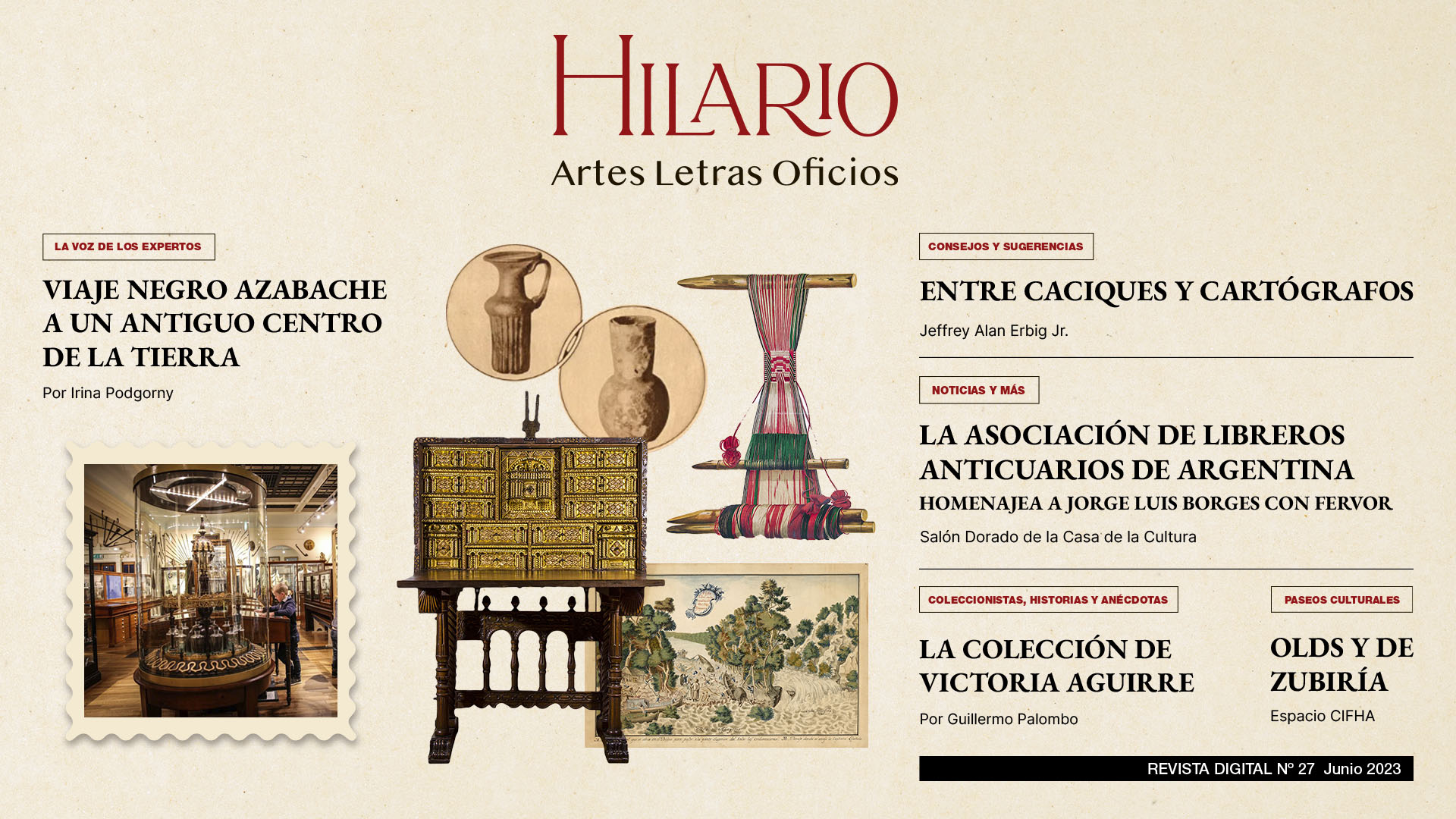 Gracias a un amigo, Abel Alexander, al abrir la PC me encontré con la sorpresa (y muy buena, por cierto), del Nro 27 de la Revista Hilario, una verdadera joya para quienes nos dedicamos al coleccionismo, el arte, la historia y el patrimonio artístico y cultural en general. Muchas gracias y como siempre, al decir de nuestros hermanos uruguayos, "a las órdenes". Un gran abrazo.