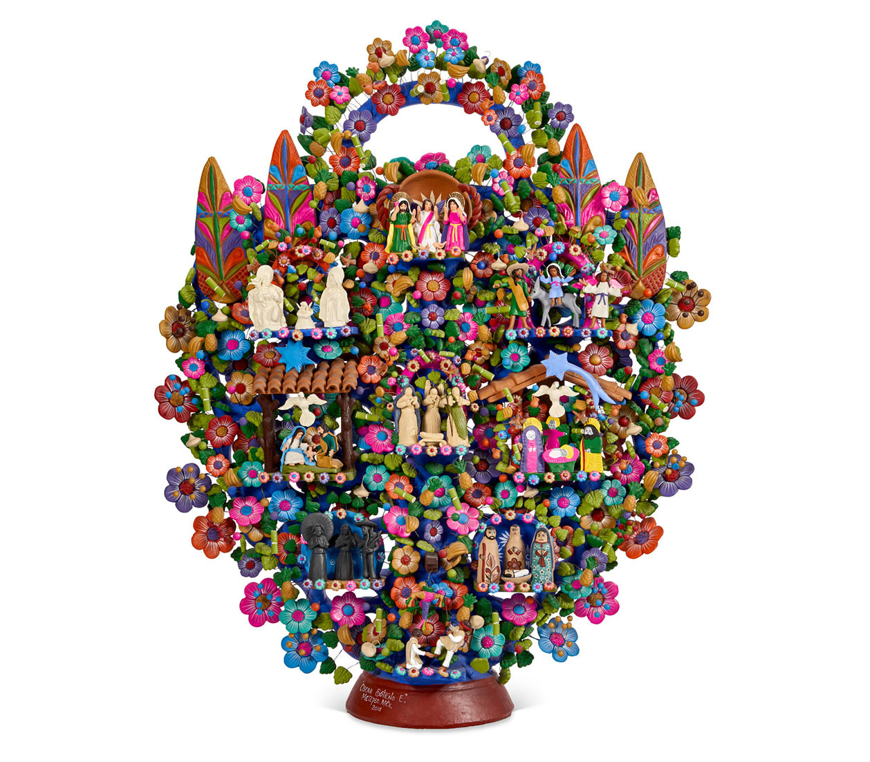 Lote 20: Árbol de la vida con belén. Obra de Óscar Soteno Elías (1971), de 91 cm de alto, 67 cm de frentey 27 de profundidad. Ejecutado en 2018.