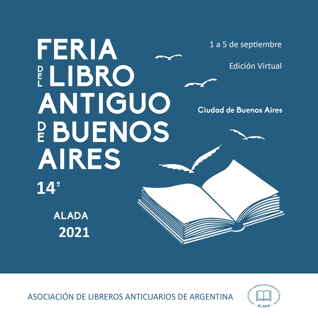La Asociación de Libreros Anticuarios de Argentina (ALADA) está en plena organización de la próxima Feria del Libro Antiguo de Buenos Aires, edición virtual, del 1 al 5 de septiembre de 2021.