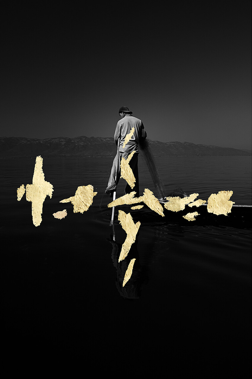 Serie Kutho : Pescador. Fotografía digital toma directa. Intervención manual con Oro 24K. 2019.