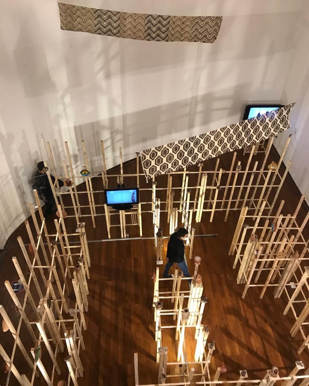 In another room, Daniela Seggiaro, screenwriter and film director from Salta, created an installation whose name "The fortress" refers to her film Husek and to a story that goes back to the so-called Chaco War. There she exposes fragments of said film, words woven into yicas, and woven fabrics translated into digital spellings in a reflection on the intercultural links that color the present.