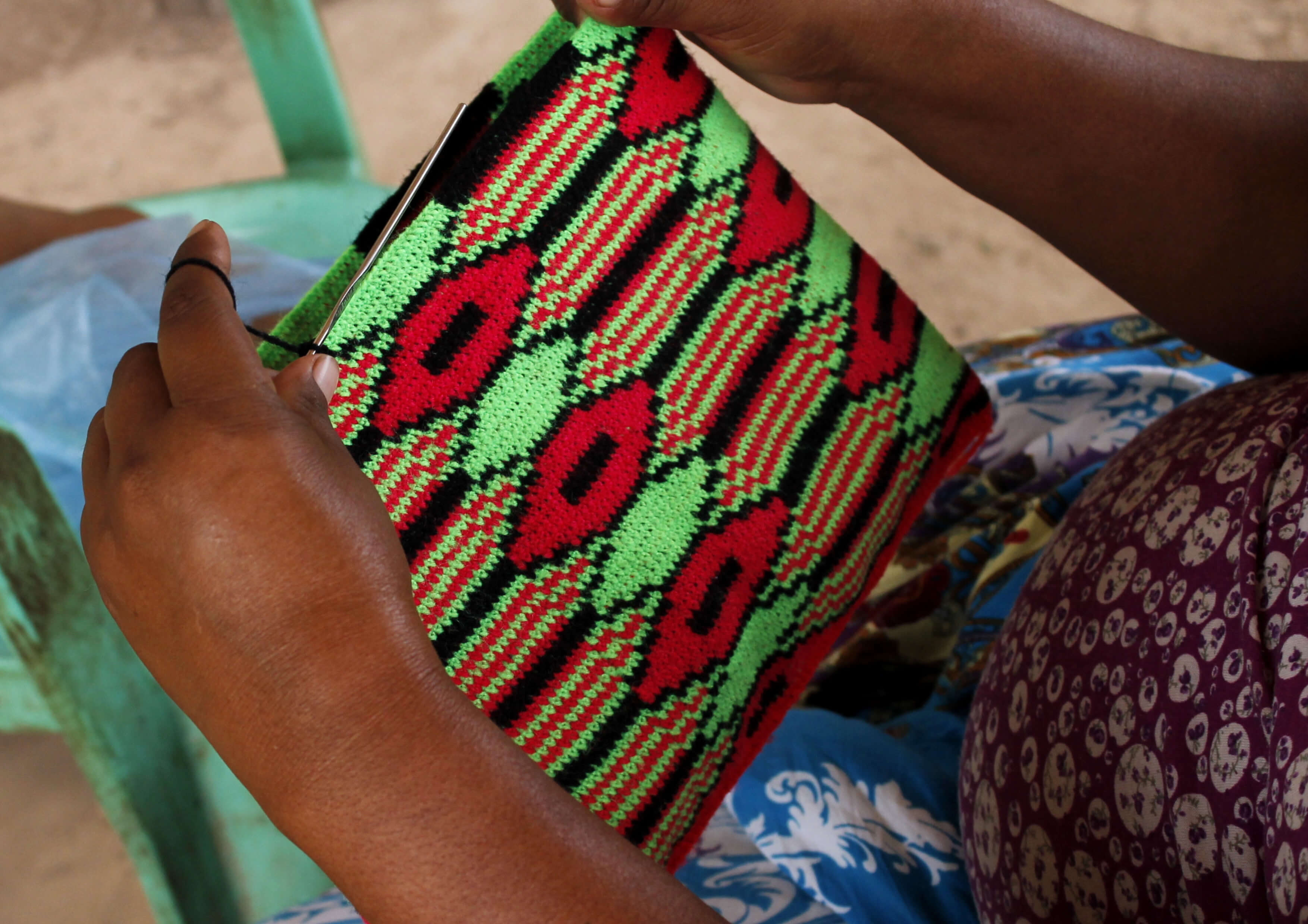 Woman crocheting a yica with acrylic wool. Quebrachal Community, Santa Victoria Este, Salta. (2015) Photo: Andrea Fernández.