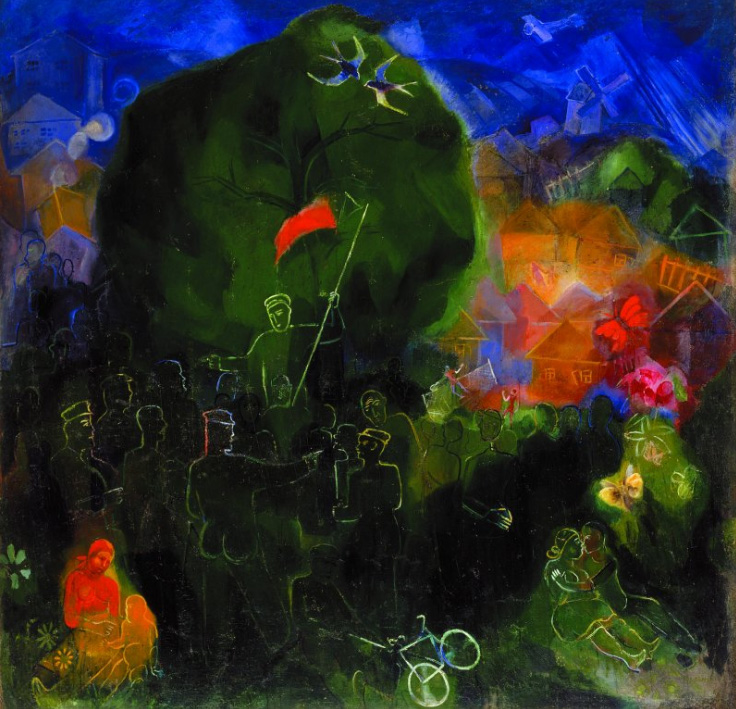 Las casi setenta obras reunidas para la ocasión dan cuenta del desarrollo de la vanguardia ucraniana en el marco de un contexto sociopolítico transido por las revoluciones de 1917, el colapso de los antiguos imperios y la guerra de independencia de la propia Ucrania, así como la sombra feroz de otro conflicto que, por primera vez en la historia, se sabía mundial.