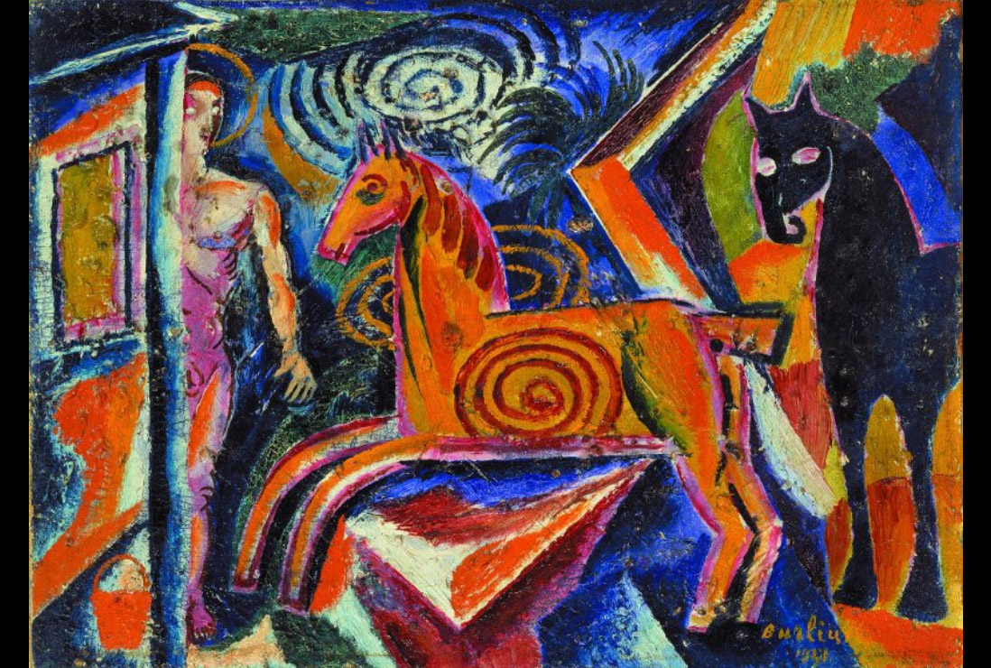 Los artistas ucranianos unieron a esa misión de ruptura la conciencia nacional de que, en un espacio inestable, el único signo puramente transparente es el que remite a sí mismo ante la fuga del contexto. Y en ese mapeo lúcido de un tiempo atravesado por el caos está la actualidad del contenido y su proyección global: el “Tiovivo” de Davyd Burliuk carga de inquietud la figura de la infancia; la “Campesina ucraniana” de Volodymyr Burliuk se confina en un interior sin poder recorrer la tierra que necesita; los personajes de “Viktor Palmov” se congregan para el combate y pierden en el camino inocencias y mariposas. Imágenes todas en las que, en términos de Walter Benjamin, el Otrora encuentra el Ahora en un relámpago y le habla a la cara a esta otra infancia, a los nuevos hombres de la tierra, a los actuales combatientes.