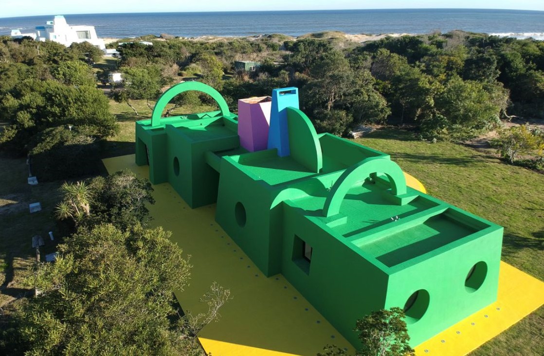 Volviendo a la casa y su diseño, el artista Edgardo Gimenez adoptó las formas geométricas simples, líneas rectas, paredes inclinadas, la estridencia de un verde eléctrico en el edificio, y figuras geométricas en el techo de otros colores. Y unas ventanas circulares y de vidrios semiesféricos, tipo “ojo de buey” que asemejan más los ojos de algún animal marítimo. El artista declaró que “quería que la casa fuera un lugar de libertad. Un lugar donde tenés derecho a ser creativo".