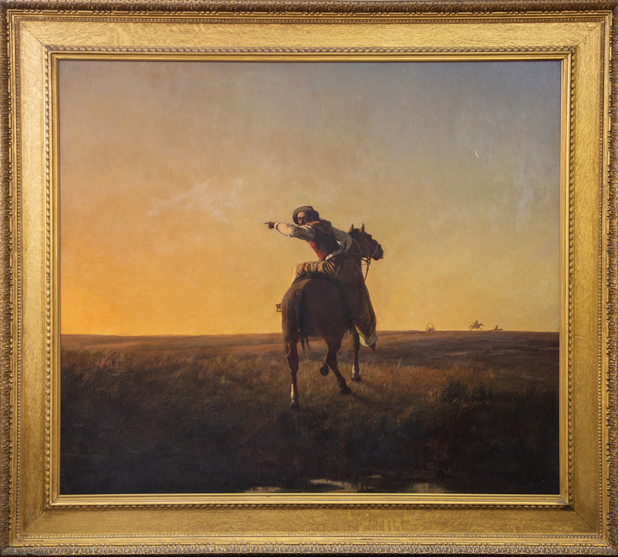 Un gaucho de espaldas enancado sobre su caballo en una incómoda posición que podríamos definir como un escorzo renacentista, gira su torso señalando algo en el luminoso atardecer del campo uruguayo. La descripción de esta imagen pertenece a la obra de Juan Manuel de Blanes (1830 – 1901) titulada “Gaucho a caballo” pintado por el artista más relevante del siglo XIX nacido en Uruguay.