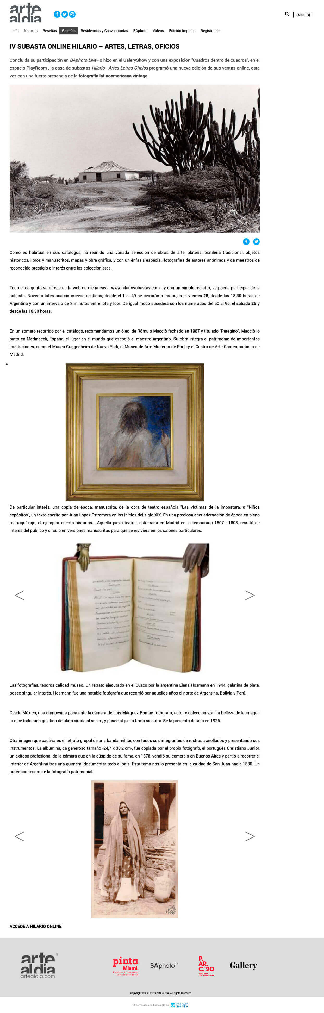 IV SUBASTA ONLINE HILARIO – ARTES, LETRAS, OFICIOS