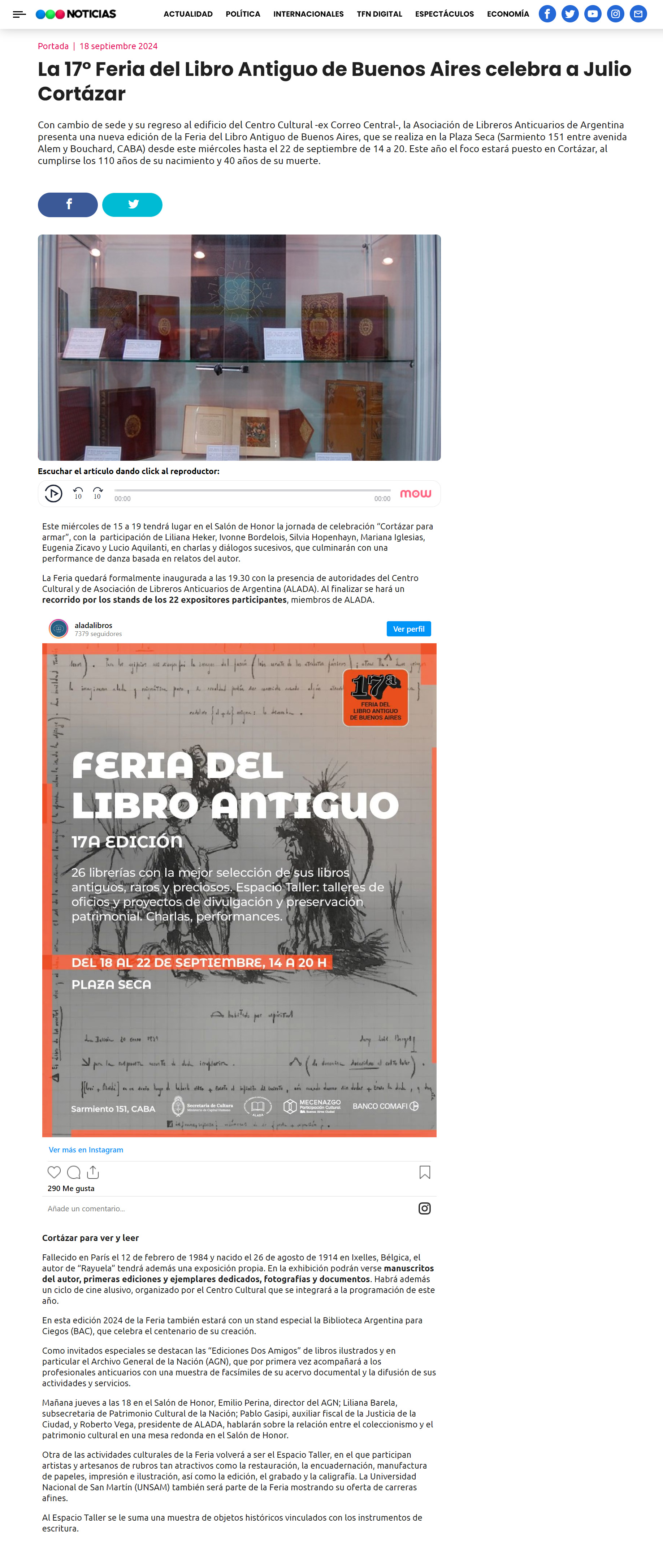 La 17° Feria del Libro Antiguo de Buenos Aires celebra a Julio Cortázar