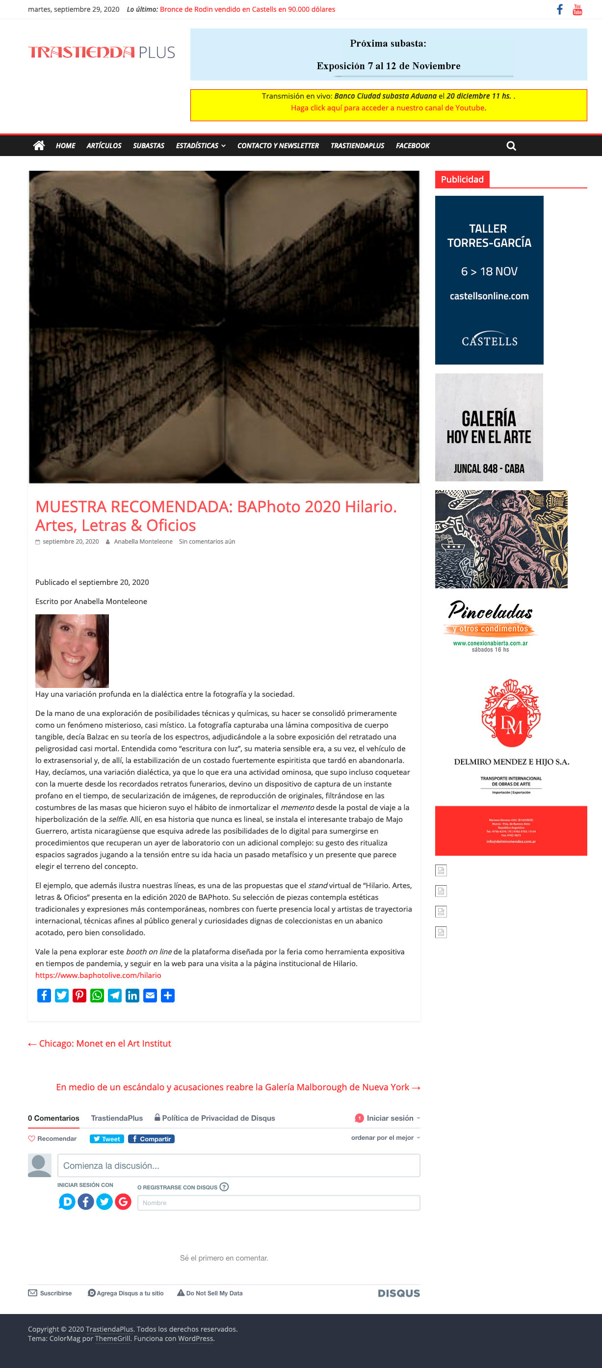 MUESTRA RECOMENDADA: BAPhoto 2020 Hilario. Artes, Letras & Oficios