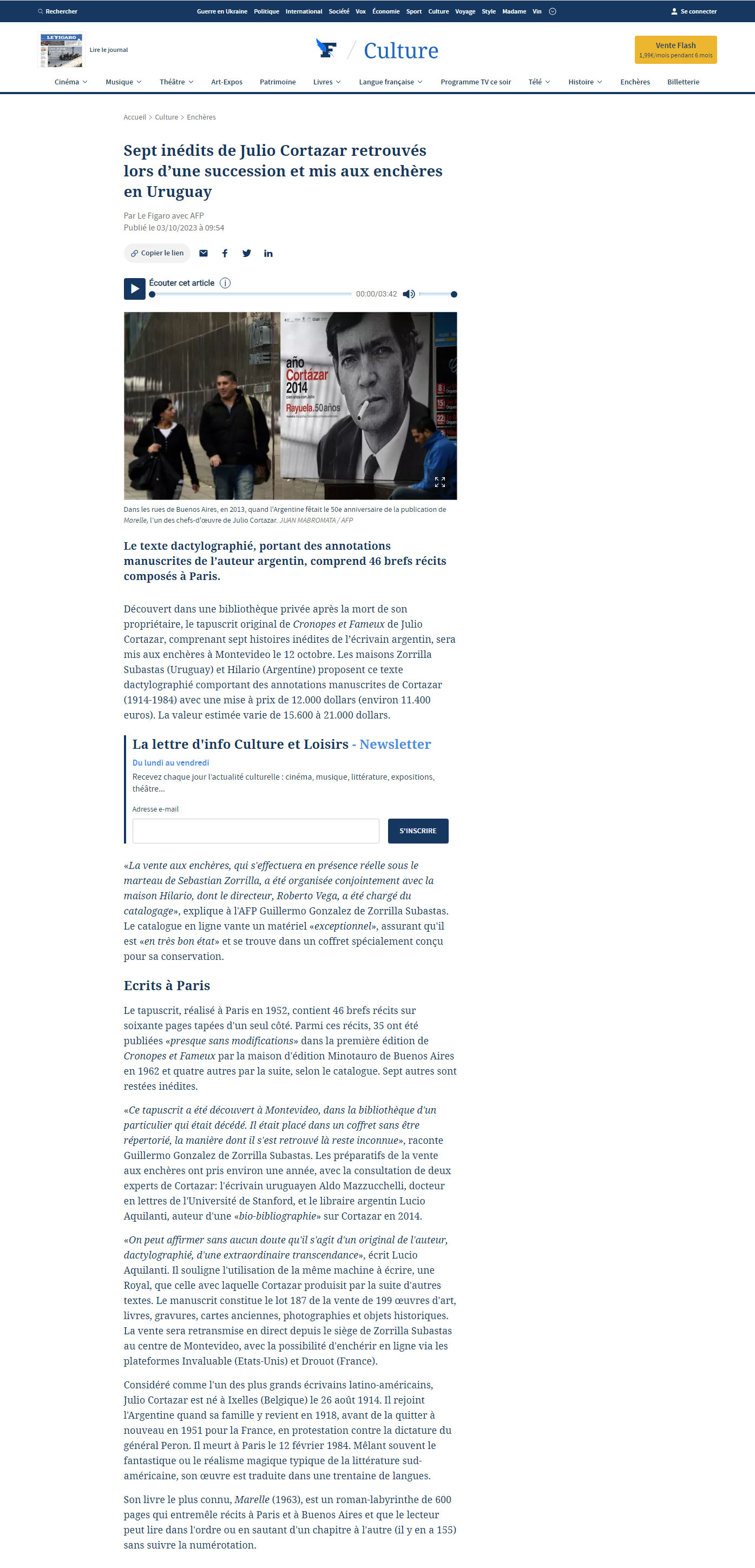 Sept inédits de Julio Cortazar retrouvés lors d’une succession et mis aux enchères en Uruguay
