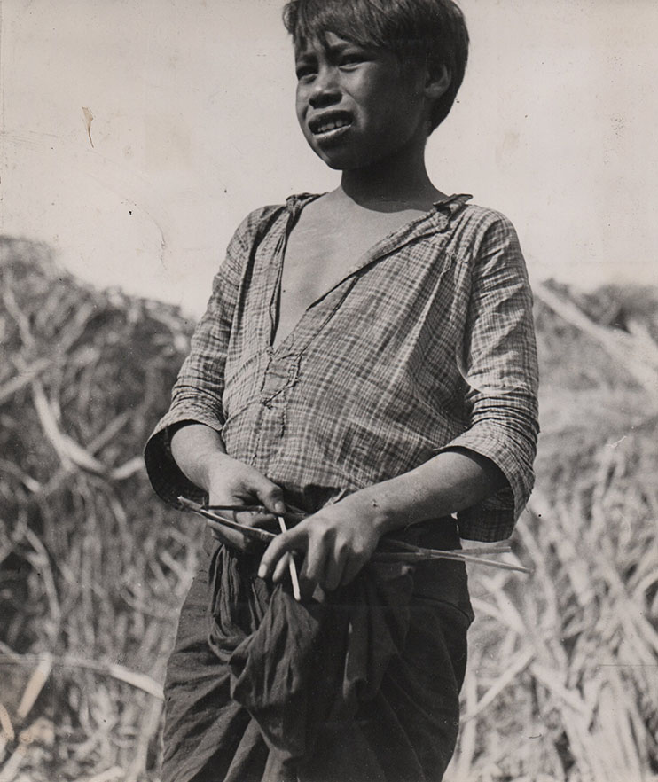 Detrás del duro gesto de este niño indígena bajo el implacable sol, seguramente hay una temprana vida de privaciones. Conjeturamos que acompaña a sus padres, trabajadores golondrinas que se han mudado a la vecina provincia para conchabarse en un ingenio en tiempos de la zafra de azúcar. Con su pequeño arco y flecha se imagina en el monte nativo, libre, listo para la caza, autosuficiente… Los antropólogos y también los fotógrafos acudían hacia estos sitios de trabajo temporal para documentar la cultura nativa del noreste argentino. La amplia mayoría de las imágenes conocidas se multiplicaron a través del sistema de postales fotográficas y eran obtenidas en los ingenios del noroeste. Ese mensaje visual no pasaba por manifestar en blanco sobre negro las injusticias sufridas por los nativos, sino en ofrecer figuras exóticas que captaran la atención de un público urbano, ajeno a esas vicisitudes y culturas.