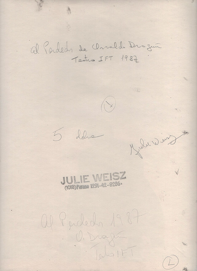 Luces y sombras, la fugacidad del momento y ese plus que sólo alcanzan los iniciados. Invisible a los ojos del público, Julie Weisz con su cámara supo captar la esencia de cada obra. Alcanzó la consagración con Teatro Abierto entre 1981 y 1983, sus fotografías alcanzaron el prestigio de este acontecimiento cultural y feliz en el ámbito del teatro, siguió su carrera haciendo foco en ese instante que lo dice todo.