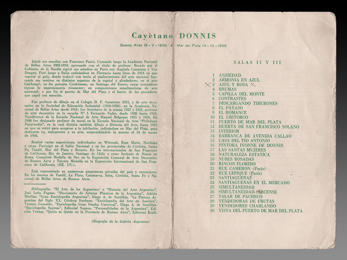 Cayetano Donnis (Buenos Aires, 1888 - 1956) fue discípulo de Francisco Parisi. Ingresó a la Academia Nacional de Bellas Artes en 1902, egresando en 1910 con el título de Profesor Nacional de Dibujo. Obtuvo una beca del Gobierno Nacional para viajar a París, para perfeccionarse y estudiar con Hermen Anglada Camarassa y Kees Van Dongen. Posteriormente se radicó en Florencia. Regresó a Argentina en 1914 y retornó a Europa en los años 1922 y 1923. Ejerció la docencia. Fue director de la Academia Provincial de Bellas Artes de Santiago del Estero y vicedirector de la Escuela Nacional de Bellas Artes. Fue Secretario de la Academia Nacional de Bellas Artes y director-fundador de Athinae. También se desempeñó como crítico de arte de la revista Nosotros. Desde 1928 fue Profesor de Dibujo e Historia del Arte en la Escuela Nacional de Bellas Artes. Expuso en San Francisco, Estados Unidos, en Roma y en Buenos Aires en las galerías Witcomb, Rose Marie y Nordiska. Obtuvo el Gran Premio de Honor del Salón Nacional de 1978.