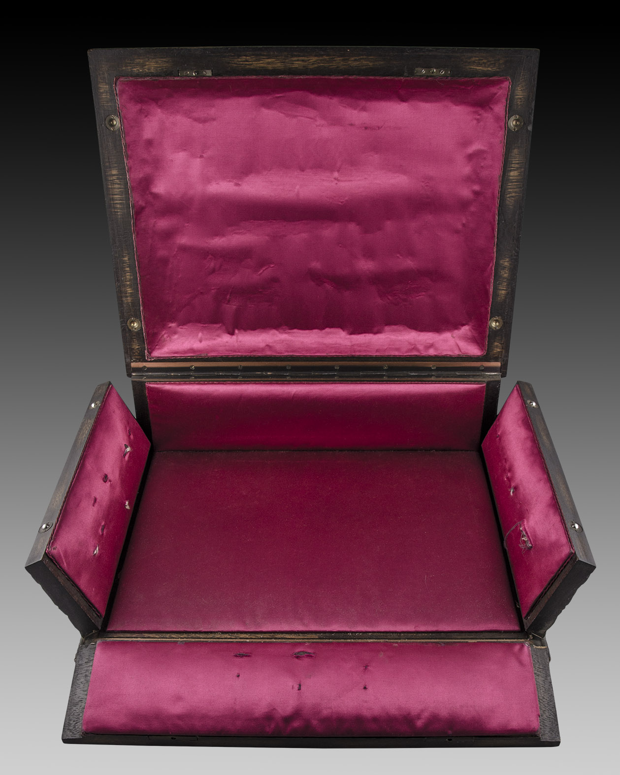Es posible hacerlo en una vitrina vertical, sin desarmar, o tratándose de banderas antiguas, en una vitrina horizontal o cofre, preservada de los rayos solares y de otros riesgos. En las manos de un ebanista, estos cofres son auténticas obras de arte. Bien lo demuestra este ejemplar.