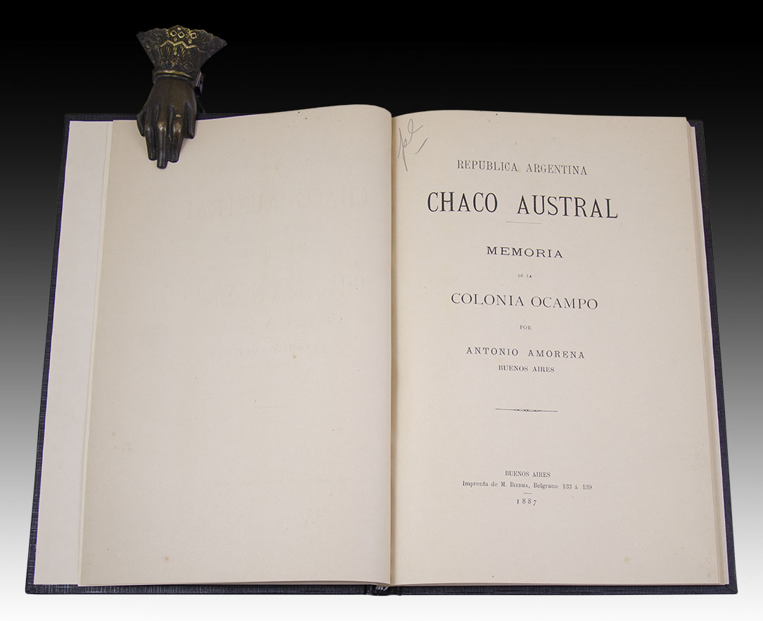 En plena expansión territorial y con la decisión tomada por el presidente Nicolás Avellaneda, una Comisión Exploradora recorrió el territorio, levantó planos y finalmente promovió la fundación de Resistencia. Fruto de ese esfuerzo se concesionaron lotes y en uno de ellos nació la Colonia Ocampo, fundada por Manuel Ocampo, quien invitó a Antonio Amorena en 1886 cuando las tierras reunidas llegaban a las 80.000 hectáreas. Para entonces la población sumaba unas tres mil almas y ésta era la colonia más próspera del Chaco Austral. Contaba con grandes extensiones de montes de quebracho en explotación, ganado, un ingenio de azúcar, una destilería, dos hornos de ladrillo, un aserradero y una flota fluvial de 31 unidades y hasta dos líneas férreas. Amorena escribió esta obra y se quedó a vivir allí. Pero la crisis de 1890 también hizo estragos en la Colonia y los signos de prosperidad fueron sustituidos por el quebranto económico y la desazón. Ocampo liquidó todas sus pertenencias y se mudó a Buenos Aires sin más recursos que su capacidad de trabajo… Aquí murió con apenas 62 años, sus restos descansan en el panteón de la familia Solanet del cementerio de la Recoleta.