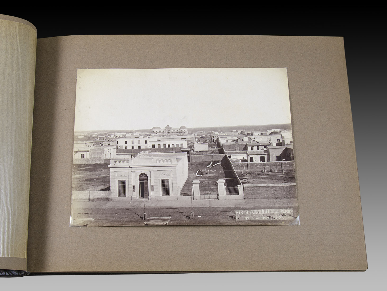 Álbum con 13 fotografías vintage a la albúmina, montadas sobre cartulinas. Medidas: 16 x 20,5 cm. La encuadernación artística, en pleno cuero, presenta a un gaucho a caballo repujado en su tapa.