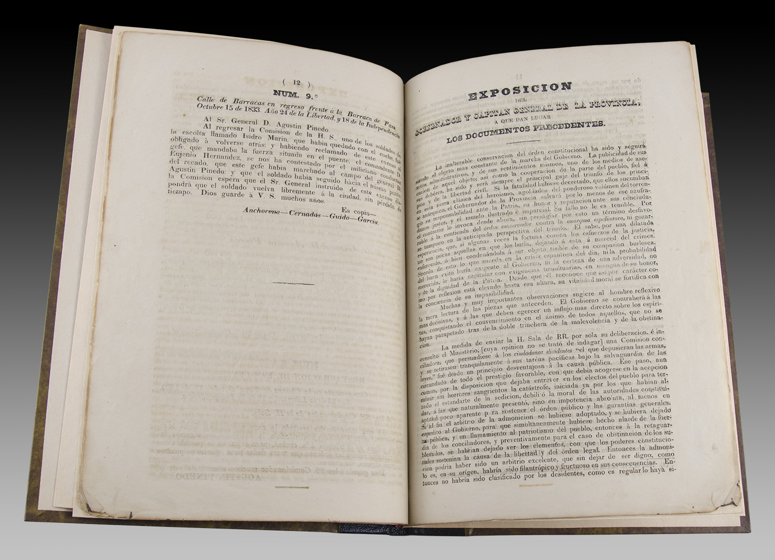 Raro, testimonia un momento especial de nuestra historia. En 4º (30 x 21 cm), 12 pp., incluye Portada (restaurada). Suárez, n. 1555.