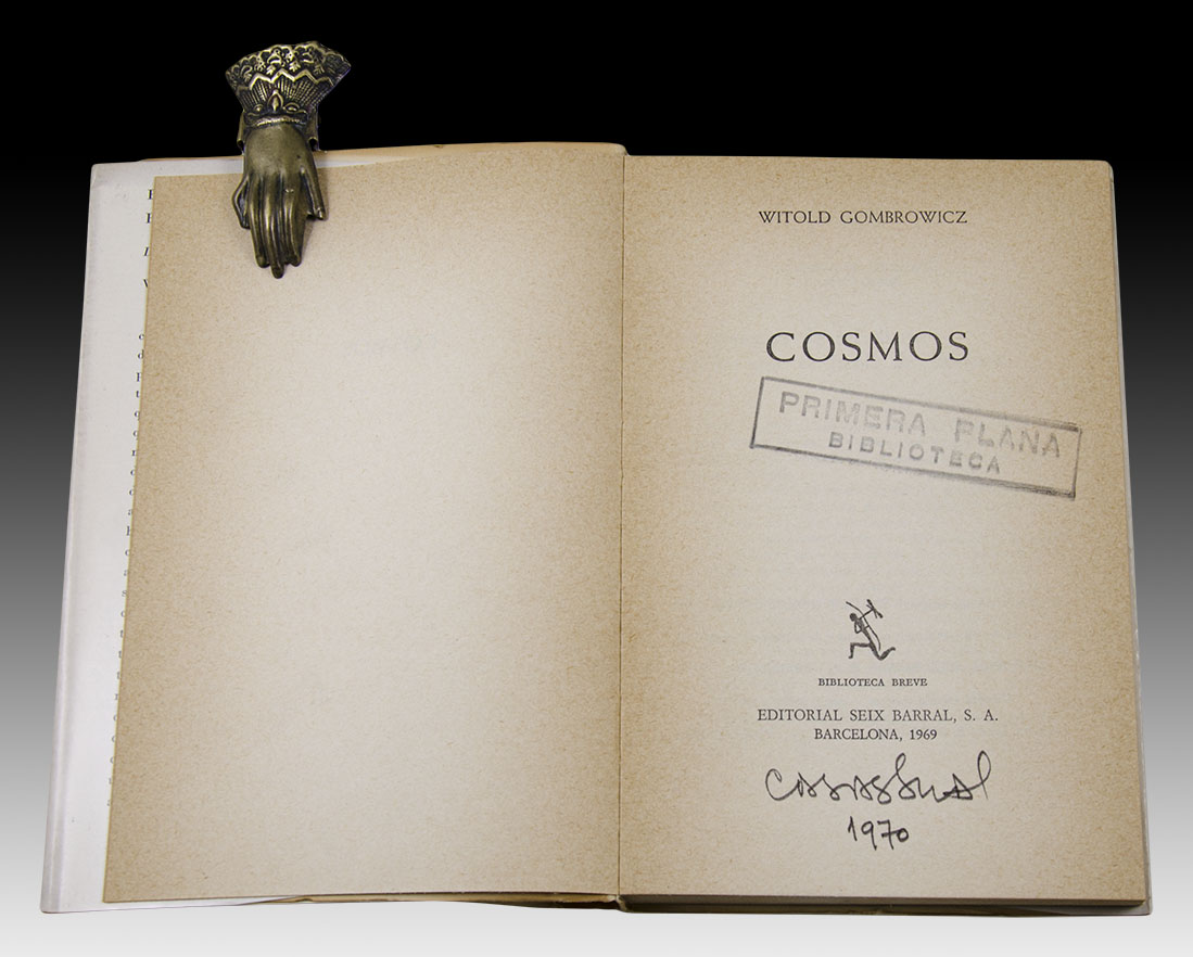 Written in 1965, this is the first edition in Spanish. "Cosmos" introduces us in an ordinary way - two boys who arrive at a country house and observe a sparrow hanging from a tree - in an extraordinary world, in a way, behind the scenes of the world. The chaotic existence and the fragile nature of the human mind appear, as the leitmotif of his literature, in this novel awarded with the Prix International de Littérature of 1967. With wet stamps on the cover and cover "Primera Plana - Biblioteca", magazine of which Ramiro de Casasbellas was director.