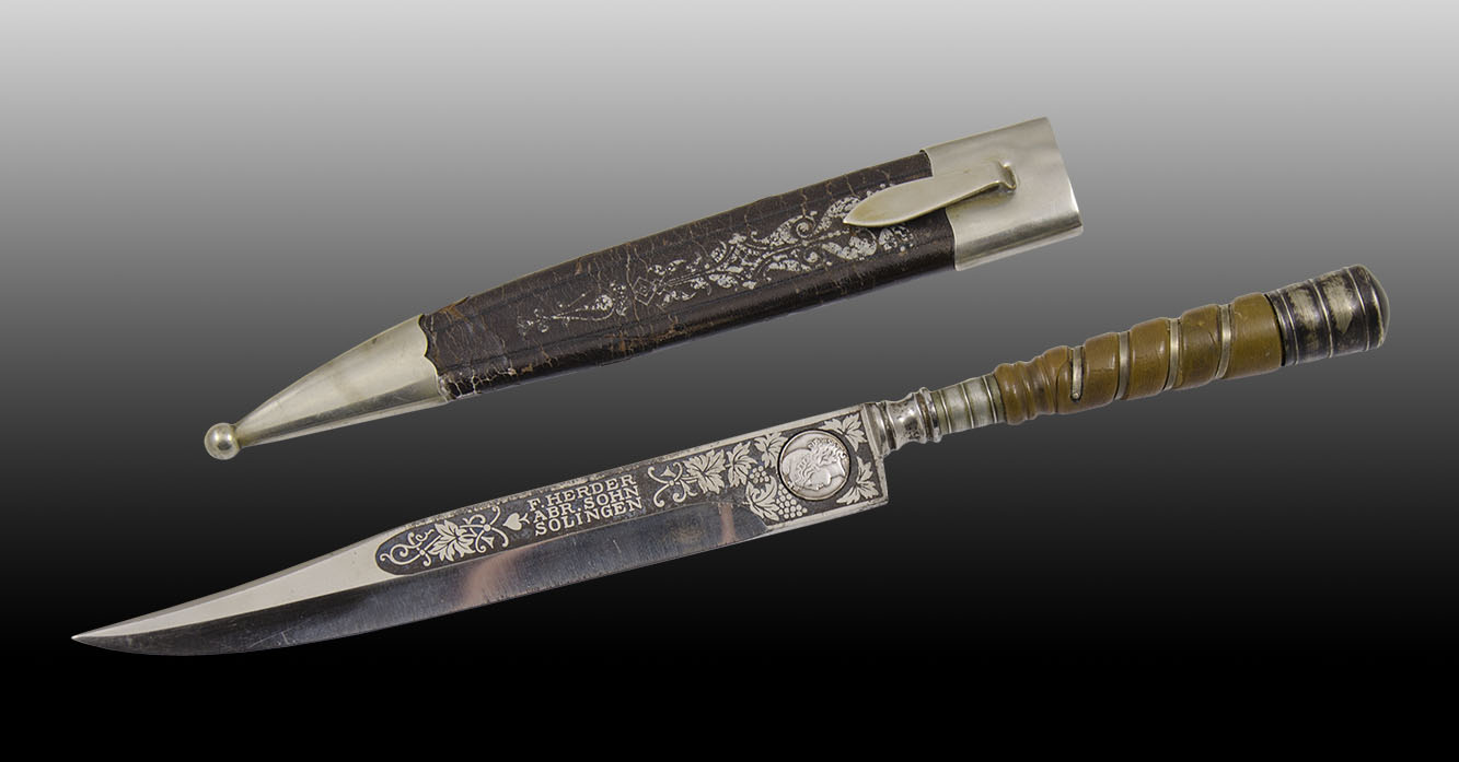 The origin of the firm Herder, from Solingen, Germany, dates back to the 17th century, when they began to forge swords and knives. In the following century -in 1727- they registered the ace of spade as the emblem of the house, and it was Friedrich Herder one of its most prominent owners, who placed his name in the company name in 1841, which continued after his death in 1887 already under the corporate control of his son-in-law, Gustav Weyersberg, another surname of old knife-smiths in Solingen. Robert Retamar in his recent book indicates that in 1908, Carl Weyersberg opened a headquarters in Buenos Aires, whose representative -R. Dudwing- was domiciled at 223-233 Florida Street. (1)