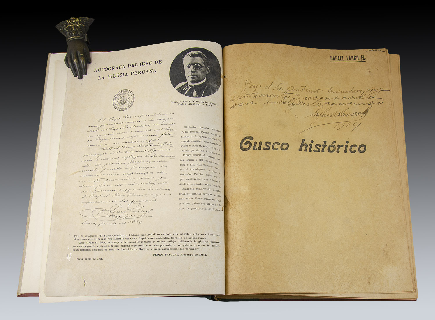 Raro y buscado. En 4° (28,5 x 20,5 cm), 337 pp. Encuadernación de editor en rústica; ejemplar dedicado por el autor. Incluye textos de Luis E. Valcarcel y 500 fotografías, muchas de ellas de Martín Chambi. Se trata del primer libro que recoge específicamente sus fotos.