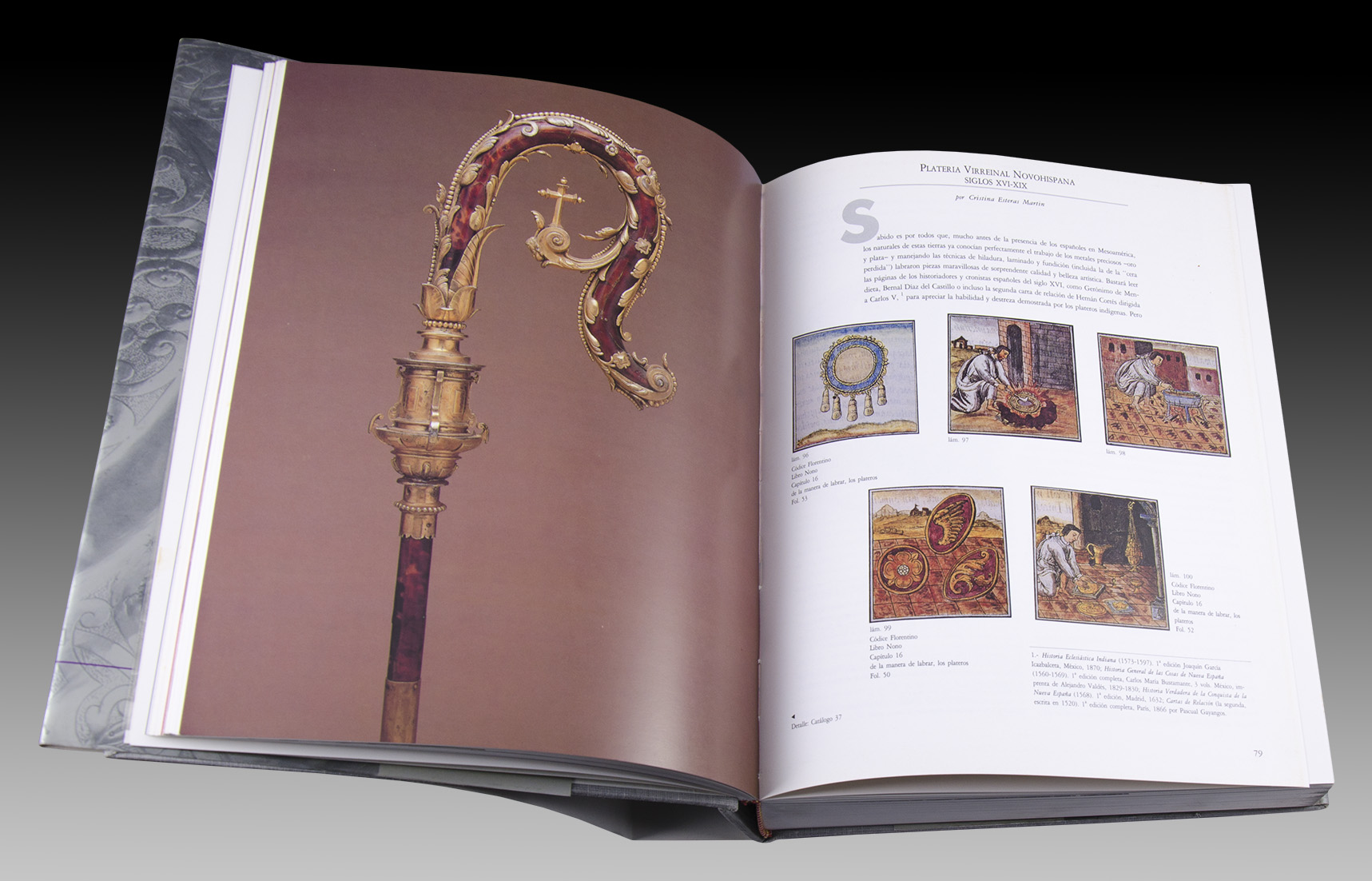 Obra monumental editada con motivo de la magna exposición celebrada en el Centro Cultural Arte Contemporáneo, dedicada a los quinientos años de historia de la platería mexicana; en especial, la virreinal, minuciosamente estudiada y con aportaciones de la curadora invitada, la especialista española Cristina Esteras Martin (ver lote anterior). El volumen traza un recorrido visual y documental por las piezas maestras de orfebrería, con estudios de especialistas y reproducciones de gran calidad.