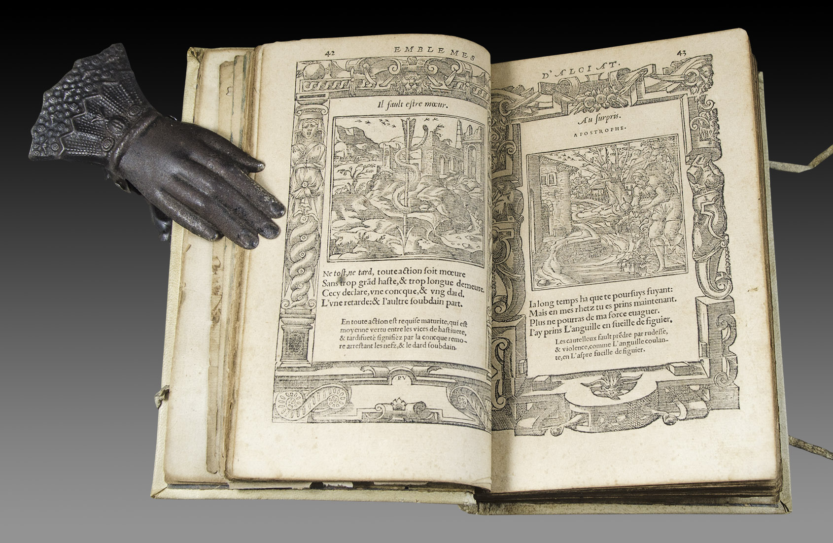 Emblèmes d'Alciat, de nouveau Translatez en Français vers pour vers iouxte les Latins (...) A Lyon chez mace Bonhomme. 1549.