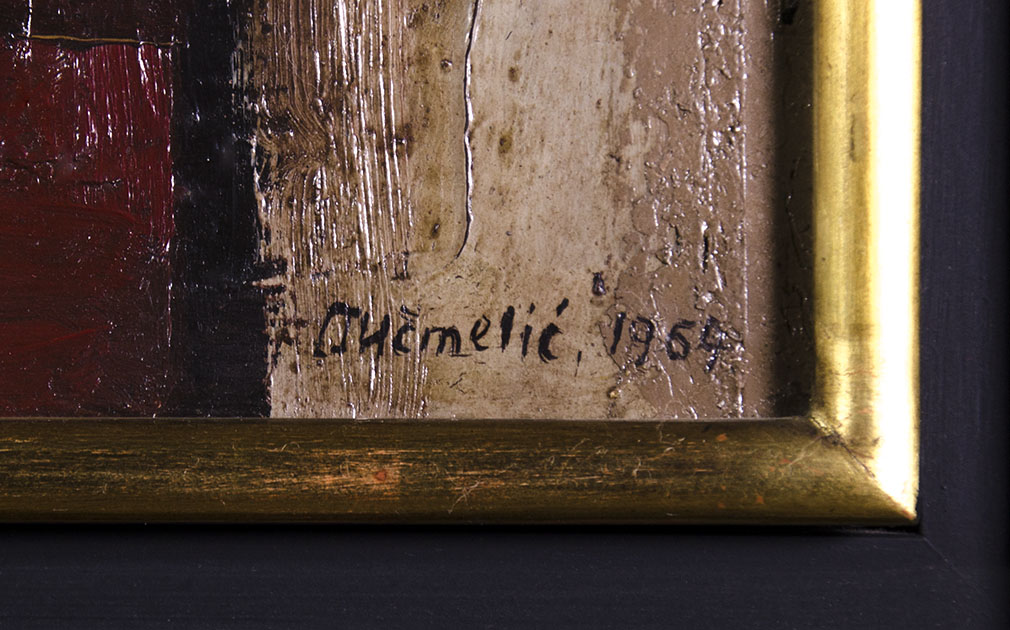 Zdravko Dučmelić (Croacia, 1923- Buenos Aires, 1989), pintor surrealista y simbolista de origen croata naturalizado argentino desde 1958. Asistió a la Escuela de Zagreb, completando sus estudios en Roma y en la Academia de San Fernando en Madrid. Llegó a nuestro país en la posguerra, en 1949, y se radicó en Mendoza, donde ejerció la dirección de la escuela de arte de la Universidad Nacional de Cuyo. En 1982 ganó el Premio Adquisición Gobierno de Santa Fe del LIX Salón Anual de Santa Fe. Expuso sus pinturas y dibujos en Buenos Aires, Panamá, Londres, Tokio, Lima, Zagreb, La Habana, Santiago de Chile, Ottawa, Pekín y México. Un autorretrato suyo se encuentra en la Galería Uffizi de Florencia, Italia. Ilustró Once rostros y un poema de Alberto Girri y Laberintos de Jorge Luis Borges, en la edición De Arte Gaglianone, de 1983, a quien lo unía la admiración y la amistad.