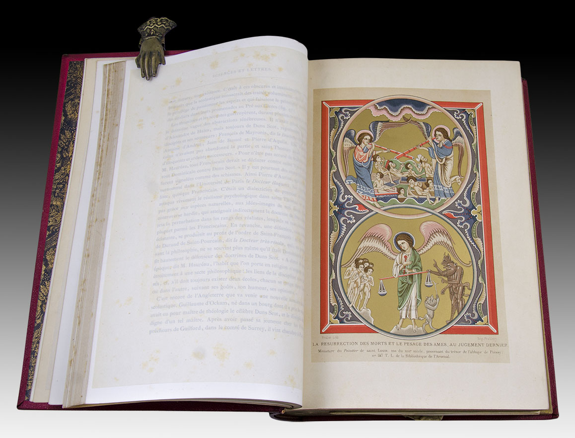 Preciosa colección sobre la Edad Media y el Renacimiento, abordando las artes; la vida militar y religiosa; los modales, usos y vestimentas y las ciencias y letras. Cada volumen enriquecido con cromolitografías y grabados en madera de exquisita calidad.