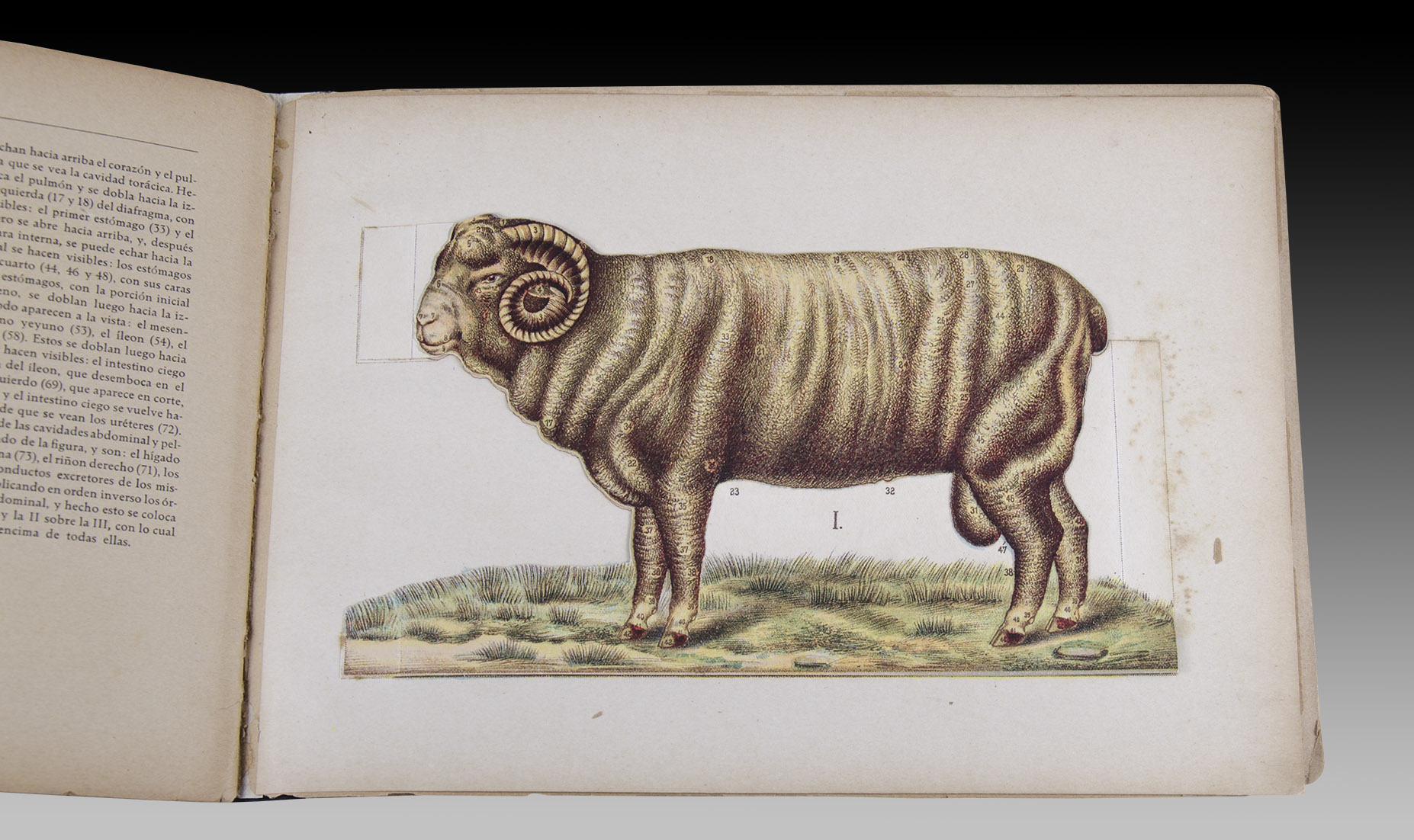 El libro, precedido por un extenso texto a dos columnas con las bondades de la oveja, destaca por una maravillosa lámina tridimensional, en la que con diversas solapas que se levantan, a colores, observamos su apariencia exterior, su esqueleto, su sistema circulatorio, muscular, y finalmente, todos sus órganos internos.